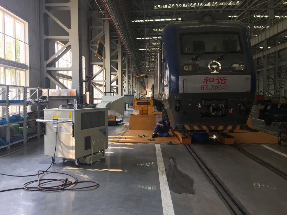 解决方案: 使用公司SAC-250工业冷气机,采用集中送风口,对机车头工作范围内进行大面积局部降温。